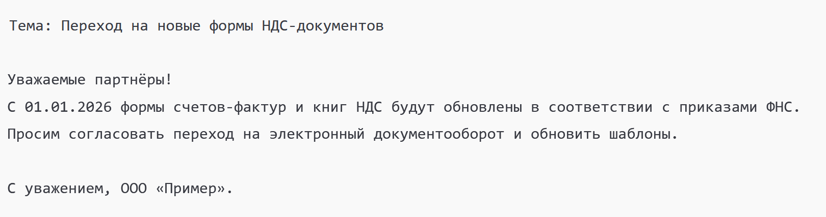 Пример письма контрагенту:
